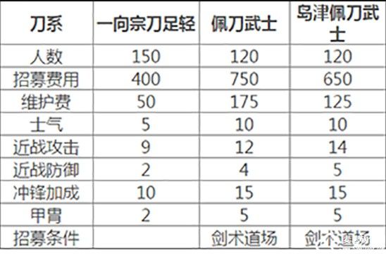 一向宗刀足轻是一向宗的核心兵种,虽然有种种缺点,50元的维护费、150人的人数、高达9点的肉搏杀伤能力,刀足轻非一向宗不可招募,而刀恰恰是枪的克星!就早期奥义研习和建筑升级没有完成从而无法招募或金钱有限无法维持一支高级武士部队的话,一向刀足将是所有使用枪足为主势力的克星