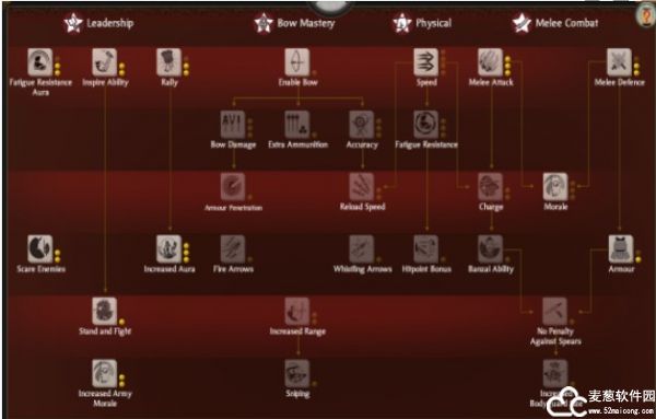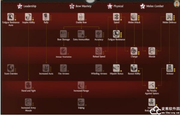 坚守:使本单位和附近三个友军单位士气不会崩溃并提高自身的近战防御,降低移动速度。建议在士气支撑不住时使用。