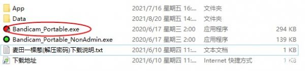 1、在麦葱软件园,下载压缩包,解压到本地,得到Bandicam_Portable.exe,直接点击运行;