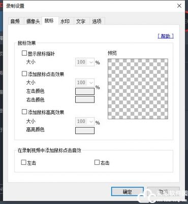 录制视频时可以鼠标点击动画效果,能够设置鼠标指针周围高亮效果,左/右键光圈颜色效果等。