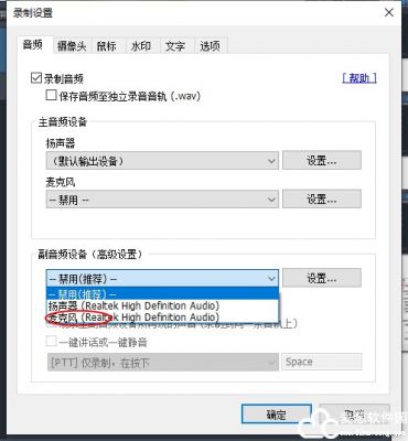 5、副音频设备选择麦克风;