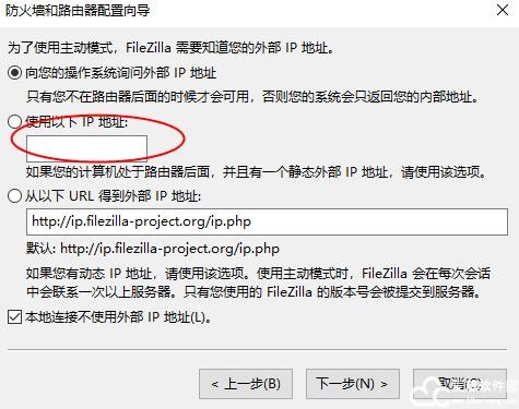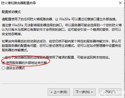 4、在fileZilla中文版,选择默认的使用服务器的外部地址来代替;