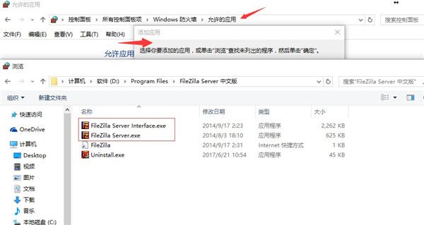 1、在防火墙把两个文件都加入防火墙的例外。