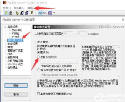 5、然后在点击编辑-被动模式传输使用的外部服务器IP地址写本来主机IP,别用默认也别写映射的私网IP。