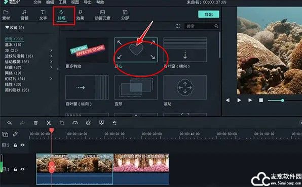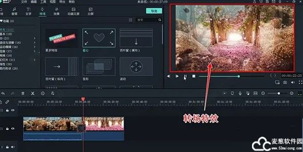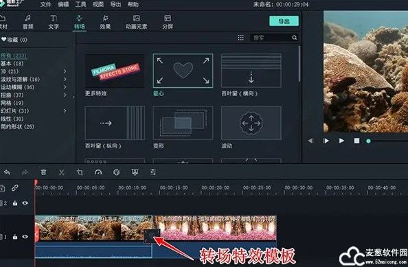 6、在转场菜单中,选择一款自己喜欢的转场