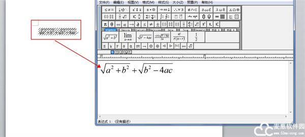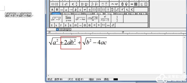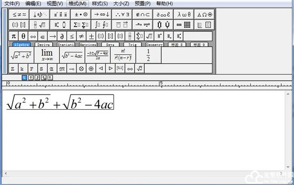 添加公式时,点击界面中的模板,模板的样式就直接显示在编辑框内,对此模板进行适当的修改就完成公式的编辑任务