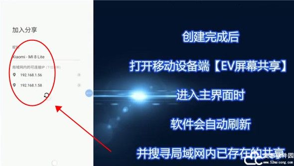 操作简单,在同一局域网下即可开启EV屏幕共享电脑版。