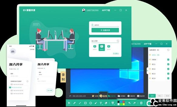 1、在麦葱站下载EV屏幕共享电脑版软件,点击软件的安装程序