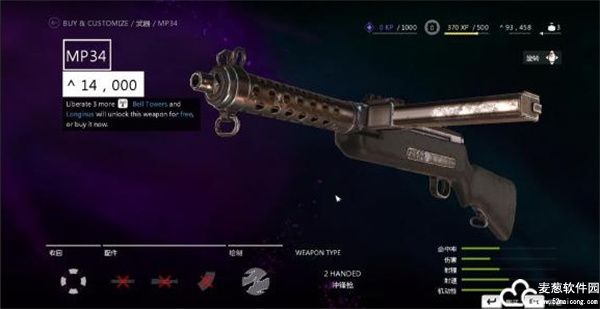 1、MP34:解放3个以上钟楼就会解锁免费获得该武器,或者购买