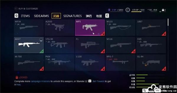 3、MP5:完成更多的战役任务就可解锁该武器,或者解放12个钟楼获得