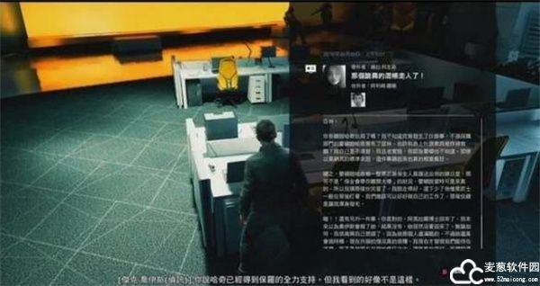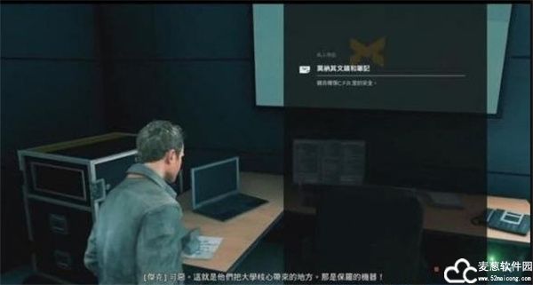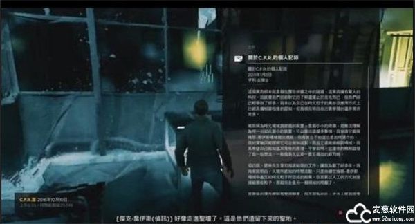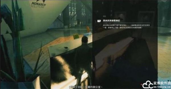 在量子破碎破解版,紧接上一处的办公室,播放时元机器的电视旁