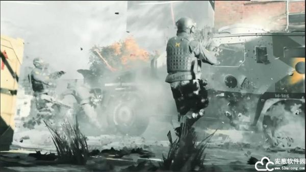 1、左边门打开会有胖子机枪兵X1+消防兵X2出来,冲上去按B放罩子,消防兵硬直,散弹秒杀