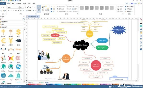 edrawmax,是一款超级专业且强大的综合类图形图表设计软件。您还在为在设计时找不到灵感而担忧?您还在为没有模板套用而烦恼?那就快来下载我们这款专业的设计模板软件吧,在这里有着海量的模板可供用户选择,而且其中有着非常之多的特色模板,就比如有流程图、思维导图、平面图、UML图以及鱼骨图等,并且可以根据用户的需要来改变思维导图的形状和位置,可以实现拼接导图,创建专属于自己的导图。那问题来了,该怎么使用呢?小编可以告诉您,使用起来是非常的简单方便,只要在导图框中输入您所需要的文字,或者是代入图片都可以。要是使用模板的话不仅仅是节省了大量的时间,还能让您的思维更加的顺畅哦。当您都输入完成后,就该到保存阶段了,要知道文件格式是非常的重要,如果您保存的文件在其他的设备或者软件中打不开,那就相当于白做了,既浪费了时间也浪费了精力,非常的划不来,但是,您使用了我们这款软件,就不用担心会出现这类问题发生了,因为它支持的格式非常之多,基本上可以满足用户的日常使用了。我们这款