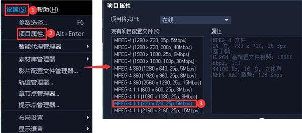 2、打开软件,在设置选项中找到项目属性,在找一个适合的格式