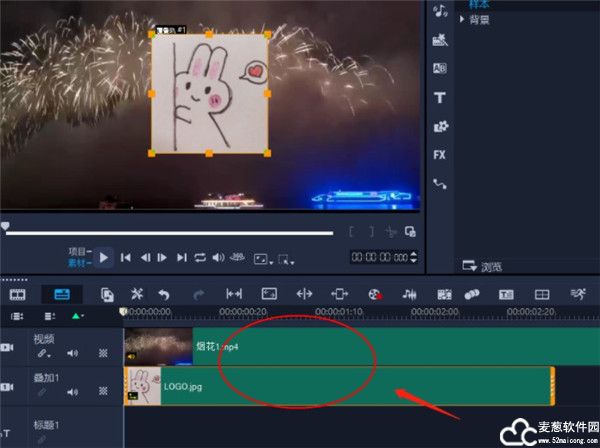 4、当一切都准备好时,会发现logo于视频不是很自然,这就需要对图标进行参数设置