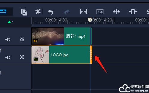 1、在会声会影X10永久破解版,先把视频放到视频轨道之中,在使用叠加插入logo图标