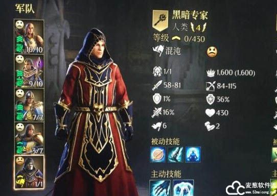 3、四级兵统帅值要求最低的是亡灵的死骑要求是1000,最高的是1600,四本兵虽然强,但是前期统帅不高只能上场一个,所以主要还是靠技能,个人还是比较推荐皇家法师或者黑暗专家,这两个都能远攻控场。
