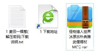 1、解压缩怪物猎人世界冰原古朴典雅武僧锡杖MOD
