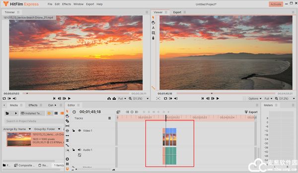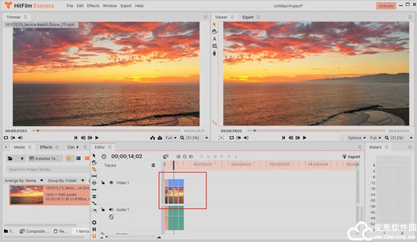 5、现在可以在HitFilm Express 16中文版中看见你加入的素材了,下一步开始剪辑