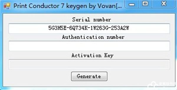 4、运行Crack文件中的“Keygen.exe”,点击Generate得到软件序列号,将序列号复制到上一步当中