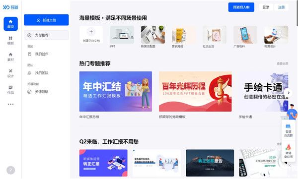 5、吾道PPT免费版有着最新原创幻灯片模板库,全部支持在线制作,每周定期更新,海量模板助你设计无忧