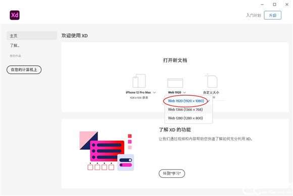 2、有三种文档大小任你选择,Web 1920、Web 1366、Web 1280;