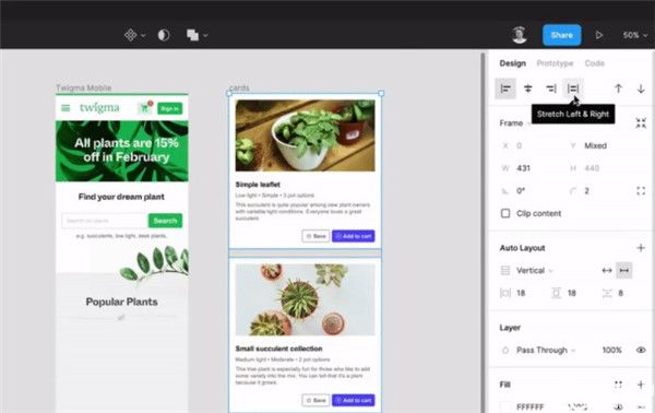 为不同大小屏幕做设计一直是各大设计群经久不衰的话题,Sketch在39版里为symbol引入了缩放这个概念,但整个画布所有对象的拉伸缩放没有解决很好,无法直观的看出同一份设计稿在iPhone5和iPhone6P的表现到底有何不同,figma官方中文版则把这个选项放在了很重要的位置。