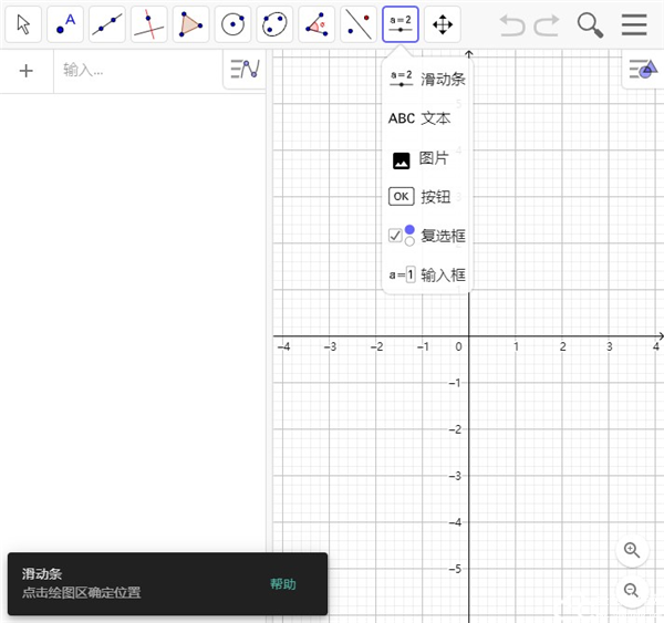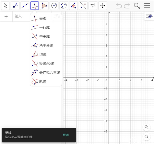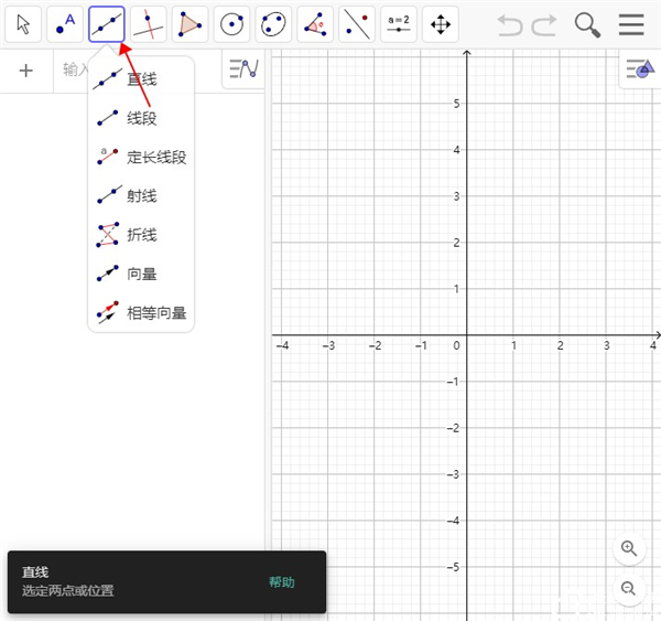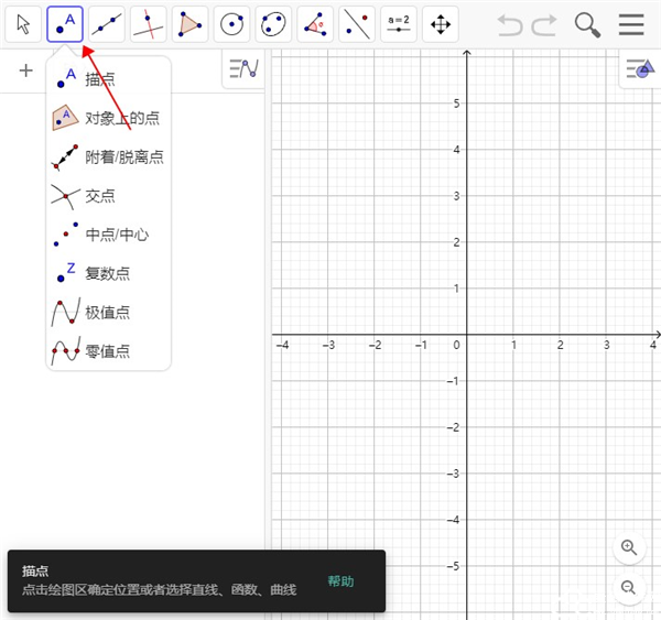 4、点击描点,帮助用户点击绘图区确定位置或者选择直线、函数、曲线;