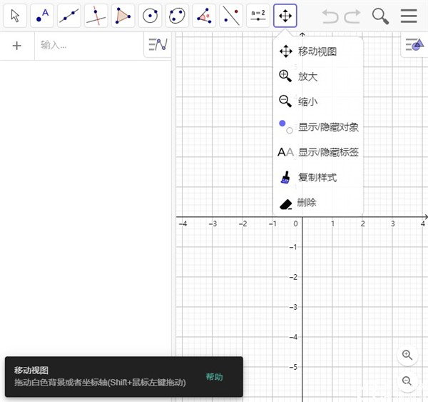 13、点击移动视图,拖动白色背景或者坐标轴。