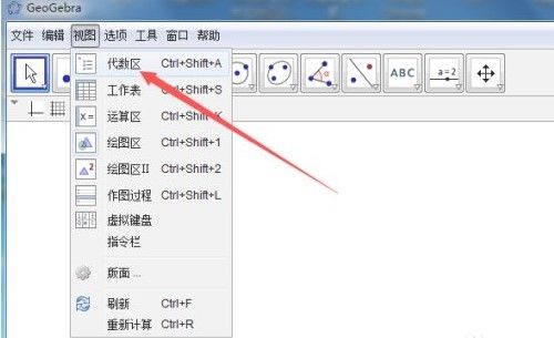 2、点击红色箭头所指的视图,然后在下拉选项里,选中代数区;