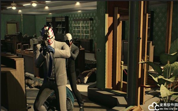 收获日2是一款全新的动作射击类单机游戏,由Overkill Software制作505Game发行,同时也是该系列游戏的第二部作品。游戏从各方面都得到了很大的提升,不管是从画质,剧情还是玩法等各个方面,新作采用的是第一人称的操作视角,这将会给玩家带来沉浸式的游戏体验。在游戏当中,玩家将以抢劫者的身份加入到游戏,你在游戏中的任务就是通过不断的抢劫各种物资来升级自己的能力,并在此过程中不被警察逮捕。你拥有着四种不同的领域,每一个领域都有自己独特的能力所在,你需要做的就是不断的提升其中一种领域来达到巅峰,而提升他们的方法,就是不断的犯罪,来使自己的罪恶值不断的增大,让你可以拥有更加强大的武器和技能。游戏内有很多的场景,供玩家们体验你可以是抢劫银行金店,甚至是军械库等等,总之,任何和犯罪沾边的事情都可以提升你的能力。