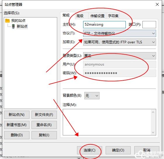 4、设置站点的参数配置,再点击连接