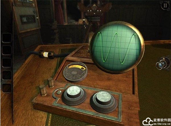 再下一步是调频,通过旋转那两个转钮,将绿色的电波频率调节到与黑色的电波频率一致后,相机将会射出一束强光,又再打开一扇新房间。