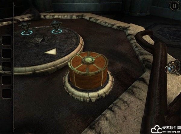 这次冒险又从投影机的房间回到水台上,一切谜题源于三棱体魔盒。与上次一样,将获得的新三棱体魔盒放置于白色三角形位置上,随后便会在泥水中冒出一个精致的机关盒子,就这样游戏的 Chapter 2 迎来第一道谜题。