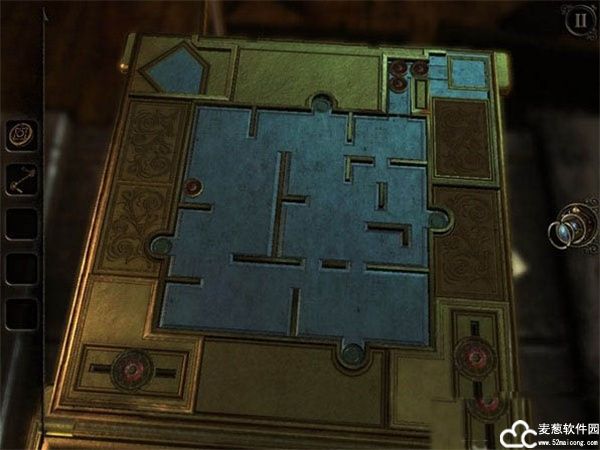 Chapter 2 的谜题类型非常多,其中包含了我们常见的小游戏。例如钟楼模型上的迷宫棋子,玩家需要利用左边与右边的滑动开关分别控制四枚棋子的滑动方向,使其最终到达四个方位的凹陷空位上。