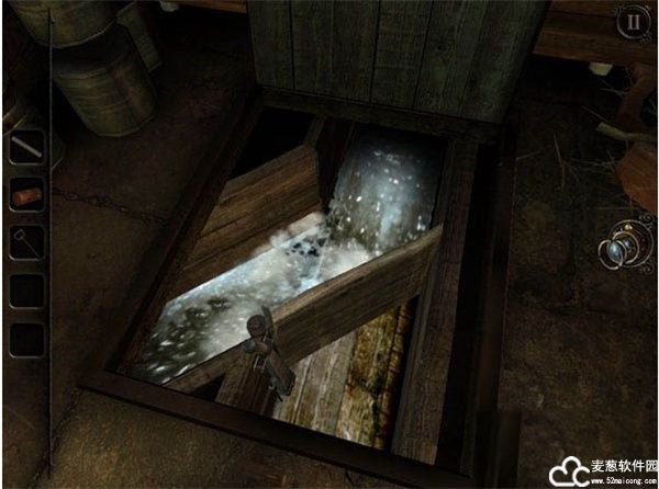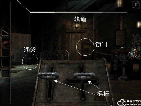 接着焦点便转移到一个灰色的遥控台上,在那里你可以拾取到一把钥匙,那是用来开启房子地板锁,以获取遥控台缺失的摇杆,并打开水闸引入活水转动水车。随后把找到的摇杆放置到遥控台上,便可控制一个悬挂在前方的沙袋。先让沙袋向左移动,在轨道的转折位放下沙袋,再提上拉前,又在转折位放下沙袋。在这两个动作之间,未上锁的房间4电脑版会通过动画提示你此举动其实是在开启一扇门,每一次放下沙袋,你眼前的门都会开启部分锁门,直到你完成放置沙袋的全过程。