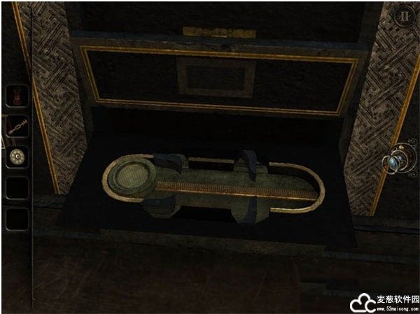 获得金条后,用一开始从金字塔里获得的小铁棍和红木盒里装着的不规则转轮,放置于遥控台隔壁的炼金炉开关中,然后转动齿轮直到炼金炉开启为止。