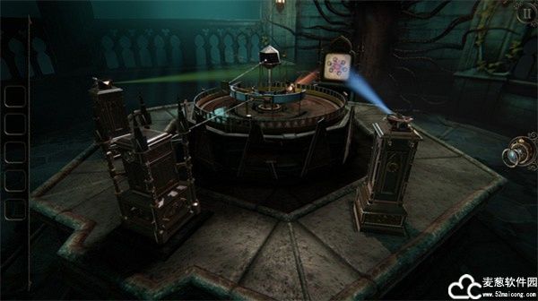 在投影机所打开的房间里,第一个引入眼帘的东西就是那座充满神秘感的金字塔模型,金字塔前方是所有机关的总开关,每开启一个灯泡,房间里都会发生巨大的变化。如果一开始不知道从何入手,不妨先看看金字塔旁边的小纸条写的是啥内容,实在看不懂英文也无妨,可以随处摸摸那里可以动的地方,凡是看上去能收集起来的东西都碰碰运气。