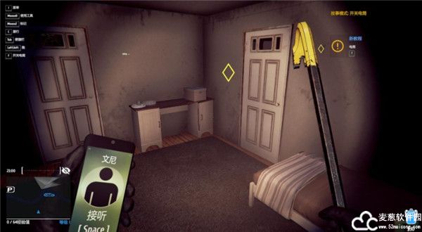 4、破解摄像头后,找到木屋后面的名画,在解锁房间门,声音要小一点,有保安
