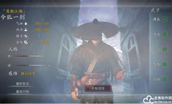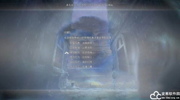 4、结束以后,需要玩家选择自己心目中的武侠世界是何种样貌,也就是选择整体游戏的难易程度;