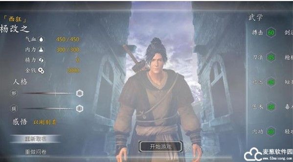 问题4:主套路随意,根据个人喜好。这里我为了证明本攻略不影响玩家玩别的套路,特意不选剑法而选了枪棍。