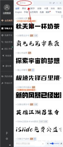 1、打开软件后,点击搜索栏,搜索自己喜欢的字体。
