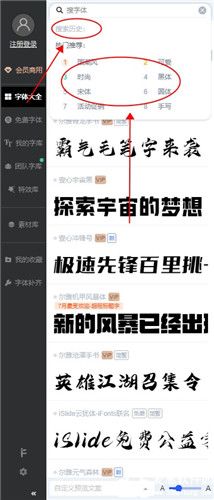 2、会出现搜索的历史记录,方便用户使用之前的字体。