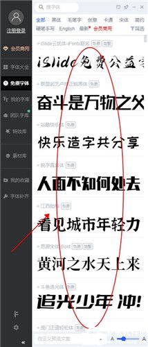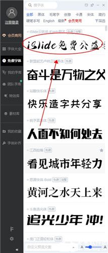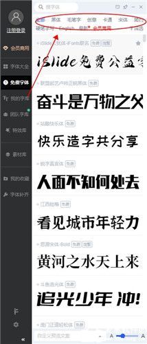6、在上面一栏之中,有字体的分类,可供用户选择。