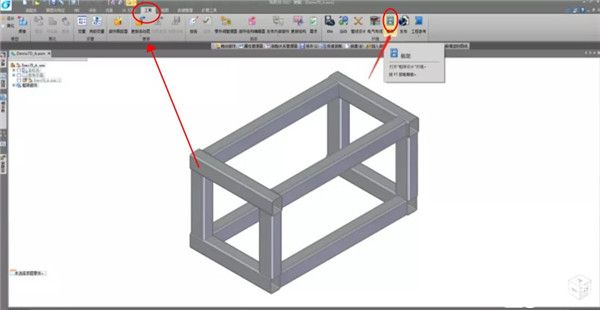 1、打开之前已经做好的模型框架,在上面一栏中找到工具,再找到框架。