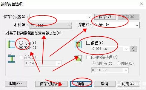 3、在新弹出的窗口中,可以设置端盖的各项参数。