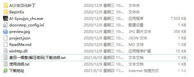 1、在麦葱软件园下载压缩包后,解压到本地,得到AI少女汉化补丁;