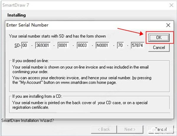 3、提示需要输入序列号,在下载的压缩包中找到序列号并将它输入进去,输入完成之后点击OK;