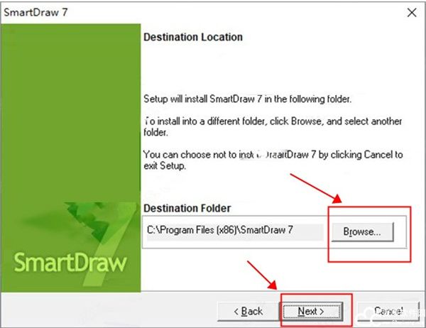 4、点击browse选择软件安装位置,选择好了之后点击next;