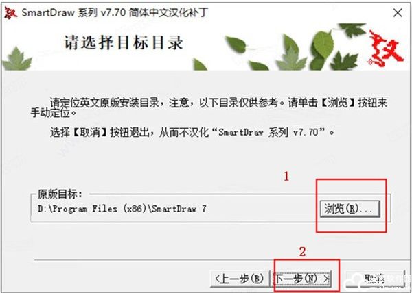8、点击浏览选择补丁安装路径,这里需要注意要和软件的路径是一致的,设置好之后点击下一步;